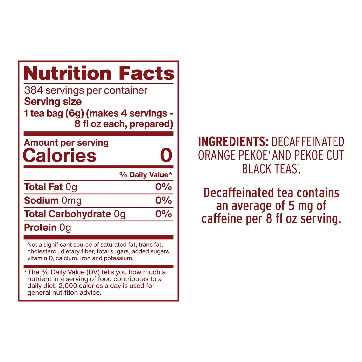 Luzianne decaffeinated family-size tea bags specially blended for smooth, clear iced tea without caffeine (99.6% removed)