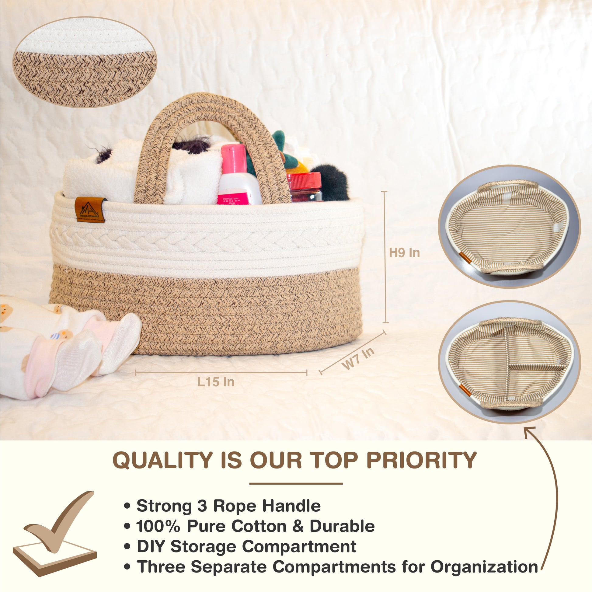 Mojoo House Diaper Caddy - Premium Gold Brown