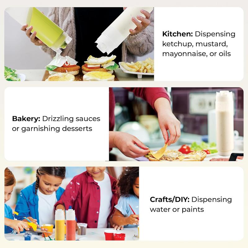 Professional-grade clear plastic bottle with portion measurements, perfect for restaurants, catering, food trucks, and kitchen condiments